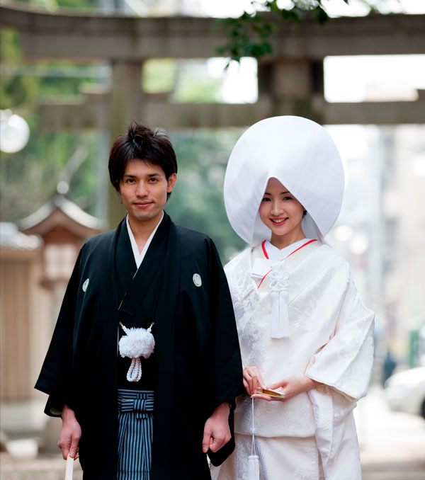 新郎、新婦の衣装、美容が入って、シンプルで厳かに布多天神社結婚式をされたいお二人に。
